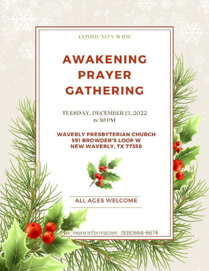 Prayer Gathering in New Waverly, Tuesday, December 13, 6:30PM |