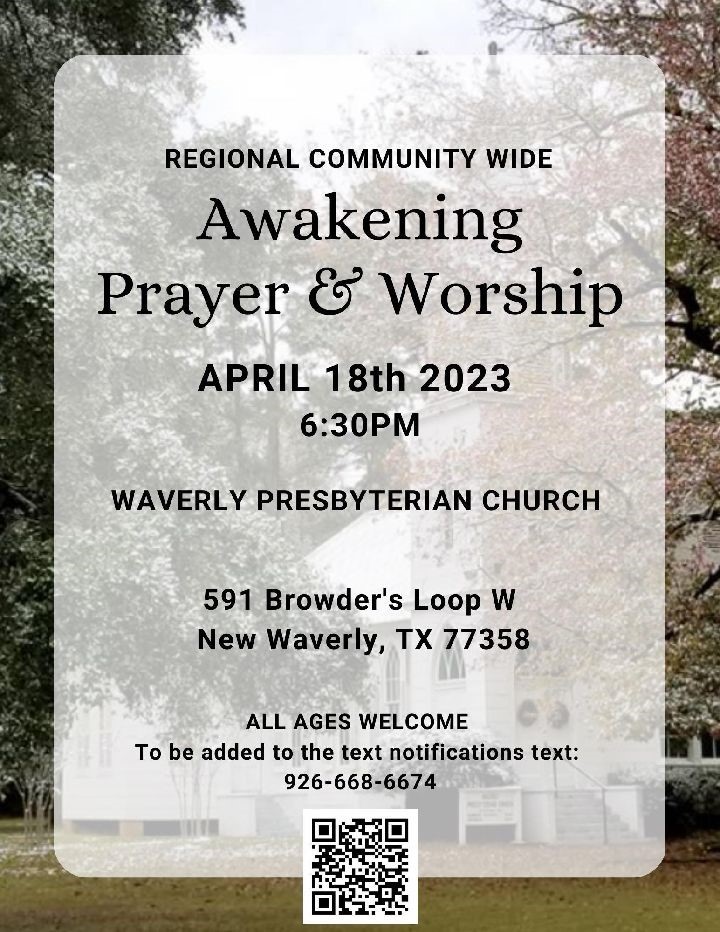 Prayer Gathering in New Waverly, at First Baptist Church |